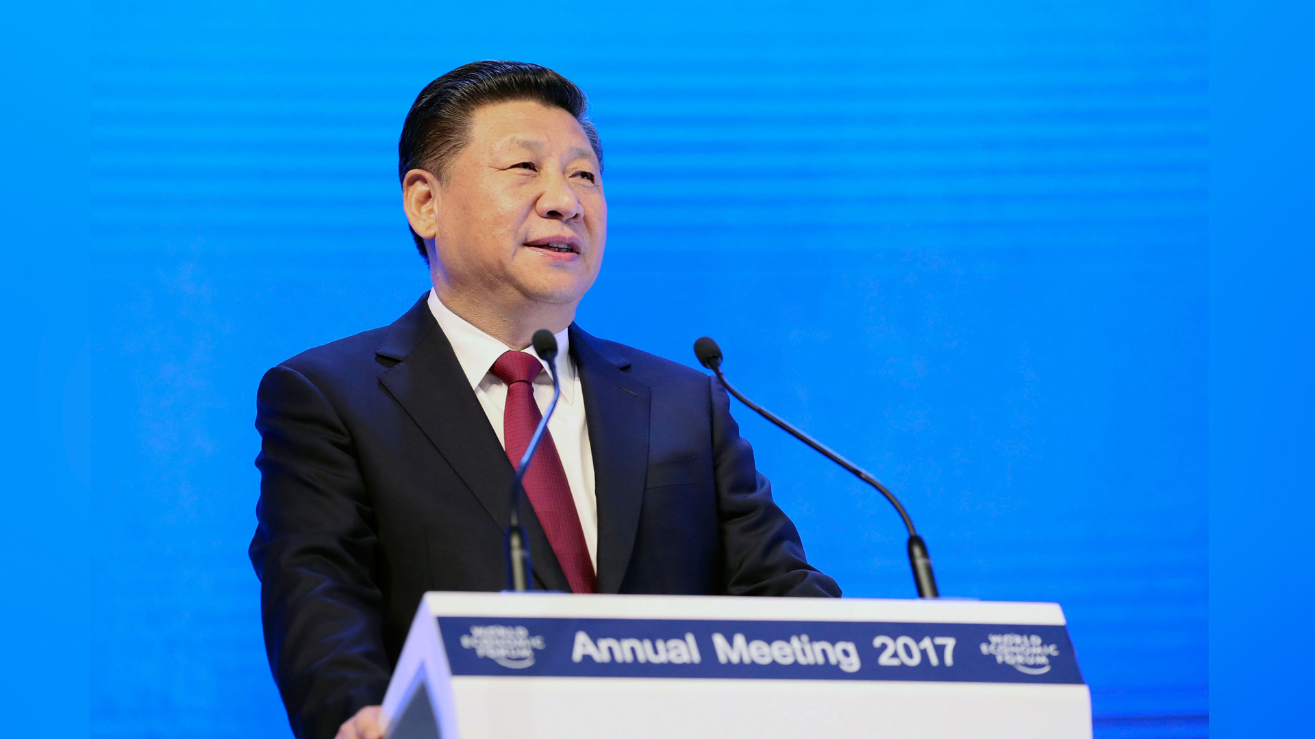 1月17日,国家主席习近平在瑞士达沃斯国际会议中心出席世界经济论坛2017年年会开幕式,并发表题为《共担时代责任共促全球发展》的主旨演讲。 新华社记者 兰红光 摄2017-01-18