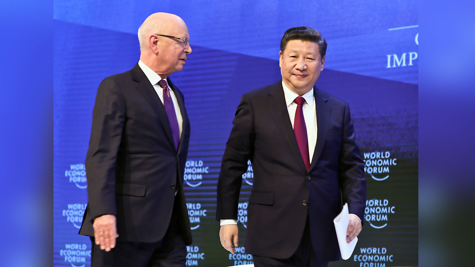 1月17日,国家主席习近平在瑞士达沃斯国际会议中心出席世界经济论坛2017年年会开幕式,并发表题为《共担时代责任共促全球发展》的主旨演讲。这是习近平同世界经济论坛创始人兼执行主席施瓦布在一起。 新华社记者 兰红光 摄2017-01-18
