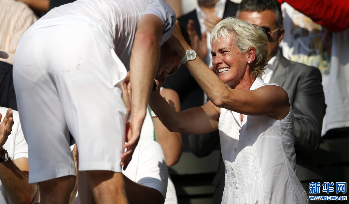 图为2013年7月7日,英国选手穆雷在夺得温布尔登网球公开赛男单冠军后与母亲朱迪·穆雷(右)分享喜悦。 新华社记者王丽莉摄