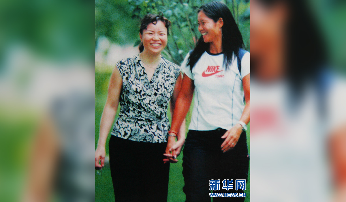 图为网球明星李娜(右)和妈妈李艳萍的合影(翻拍照片)。 新华社发
