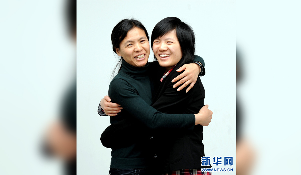 图为2012年2月21日,国际象棋世界冠军侯逸凡(右)与母亲王茜在北京摄影室合影。 新华社发(郝远征摄)