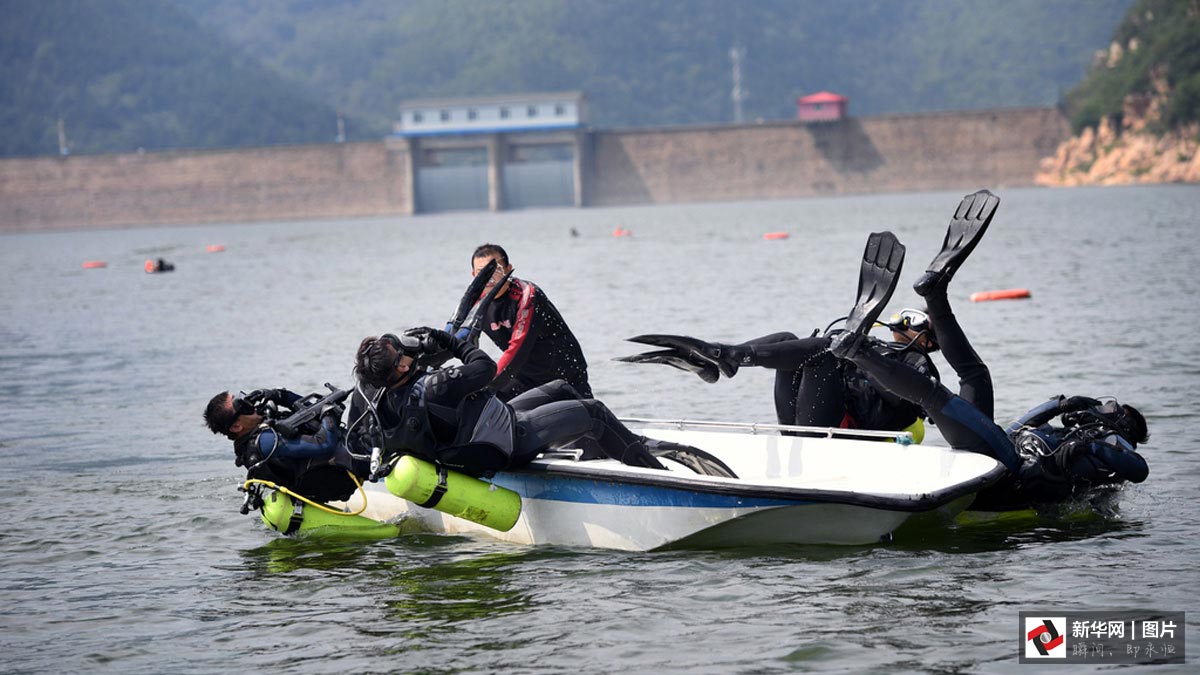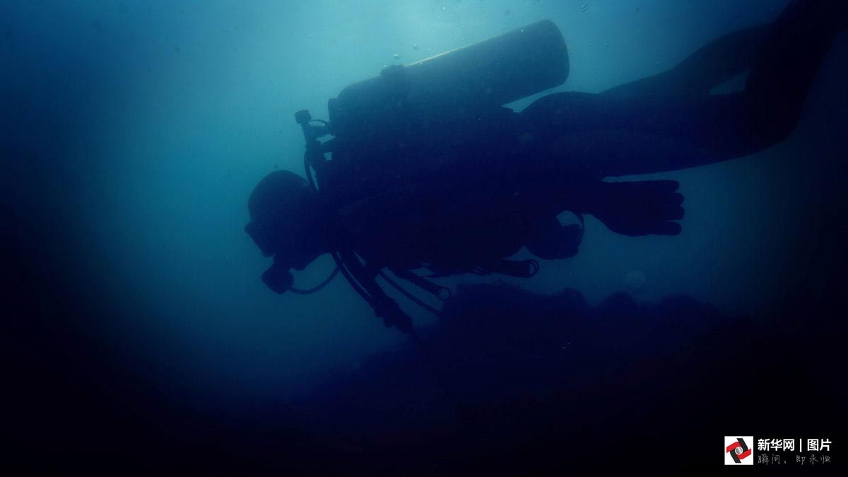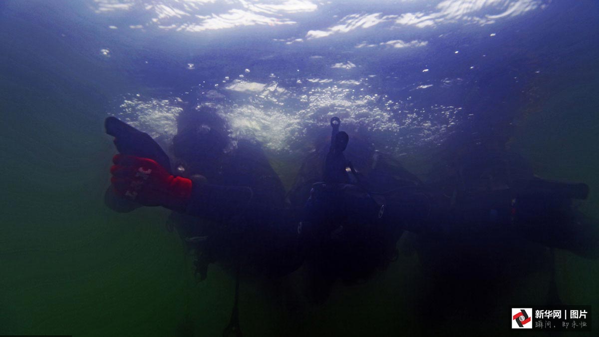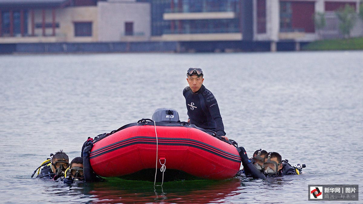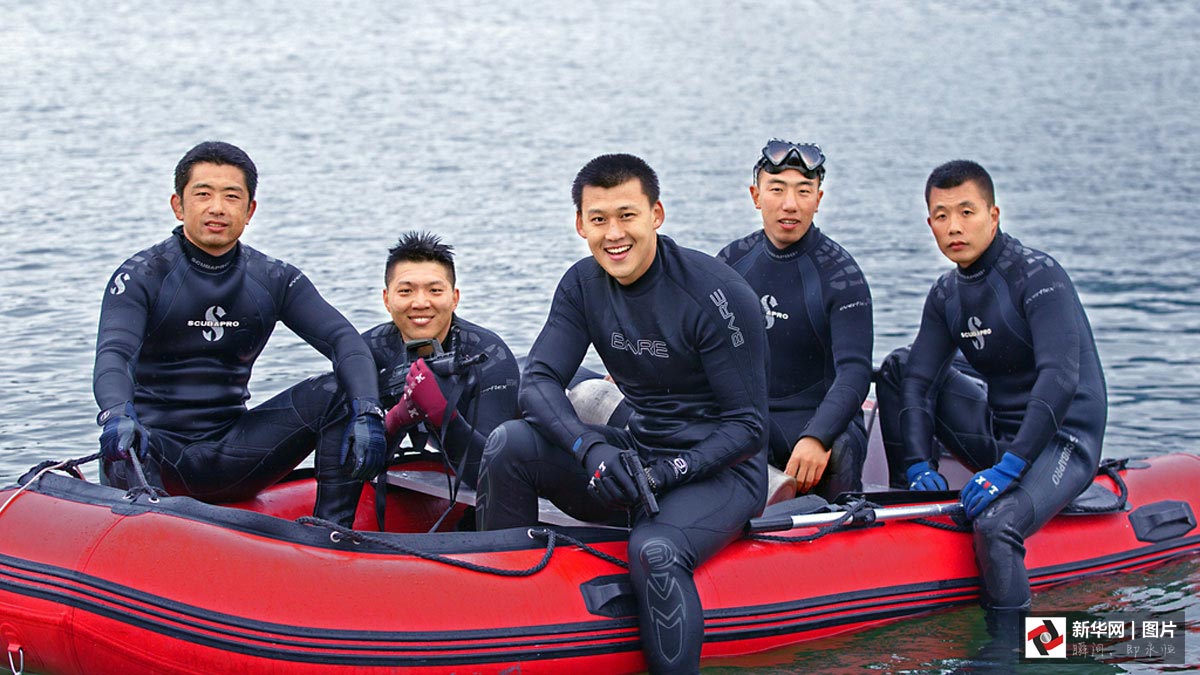 “即便是在伏天,大太阳照在湖面上,刚下水还是温的,到了六七米深,阳光打不进来了,突然就冷了。”潜水队员告诉记者:“到了秋冬季节,人下去,即便穿着冬天的潜水服,水也凉得刺骨,手、脸这些暴露的部位一入水就冻麻了。”几位队员换上潜水衣,背起16公斤重的气瓶,还要在腰间坠上相当于体重十分之一的铅块,才能潜得下去。一套装备穿戴整齐,深一脚浅一脚走入水中,再游到目标水域,下潜到水底。即使最基本的训练,一下水起码待上50分钟。在水下巨大的压力和阻力下,没有过硬的体格,根本没法胜任。难怪,队里几乎是清一色的壮小伙子。