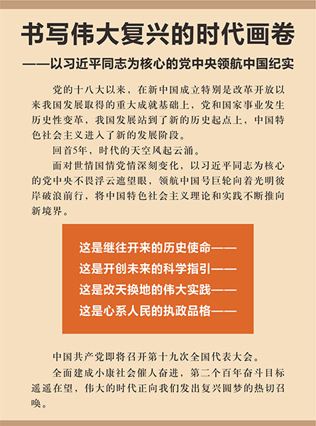 新华社北京10月16日电 题:书写伟大复兴的时代画卷——以习近平同志为核心的党中央领航中国纪实