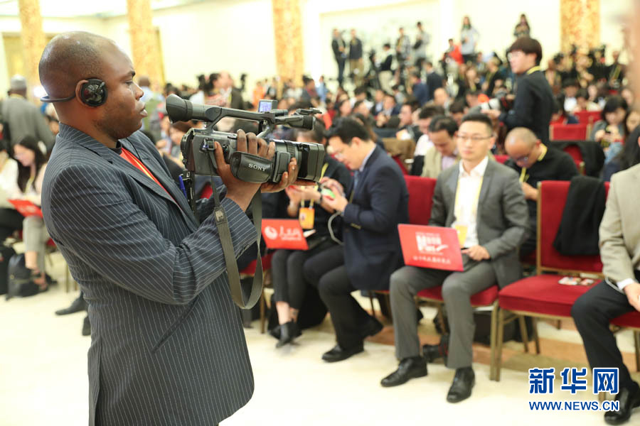 2017年10月17日下午,中国共产党第十九次全国代表大会新闻发言人在人民大会堂三楼金色大厅举行新闻发布会,并回答中外记者的提问。图为外国记者在新闻发布会现场。新华网 翟子赫 摄