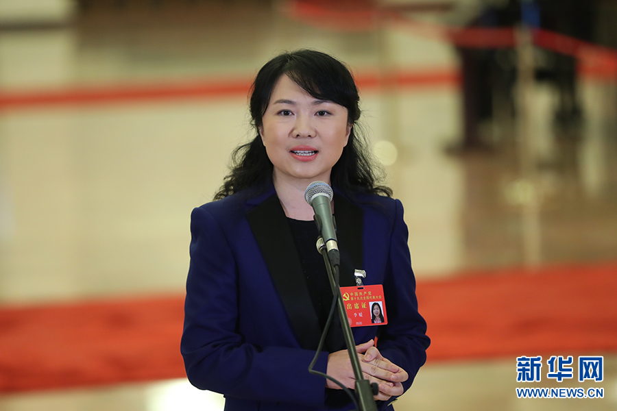 10月19日,“党代表通道”第二场采访活动在人民大会堂举行。图为李媛代表接受采访。新华网 翟子赫 摄