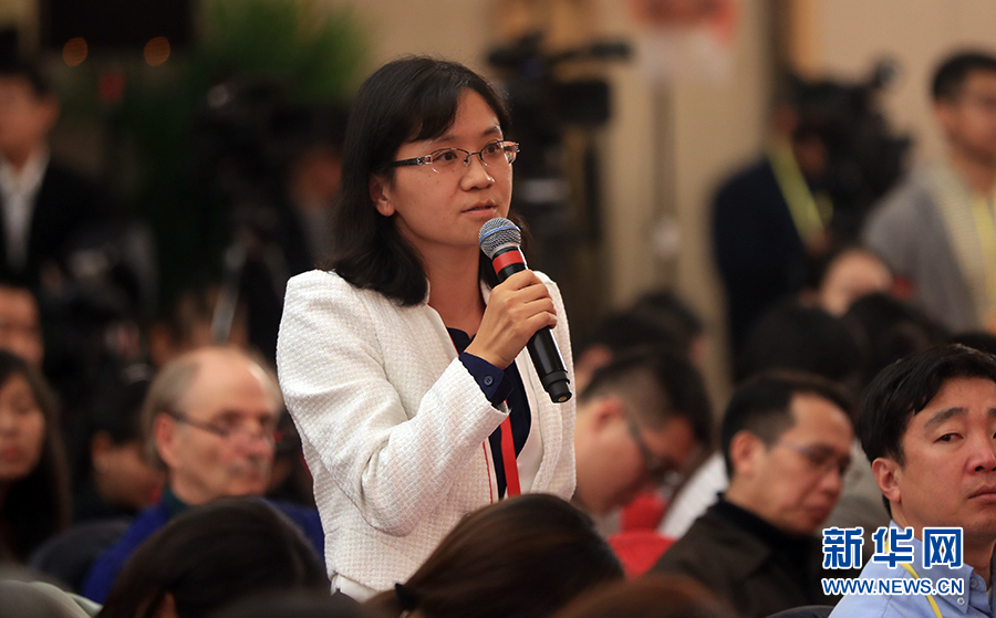 10月19日,十九大新闻中心举行记者会,邀请中纪委、中组部负责人介绍党的建设和全面从严治党相关情况。图为新华社记者提问。新华网 郝广鹏摄
