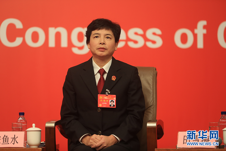 10月19日,十九大新闻中心举办集体采访,邀请政法战线代表谈全面推进依法治国。图为北京知识产权法院党组成员、副院长宋鱼水。新华网 郝广鹏摄