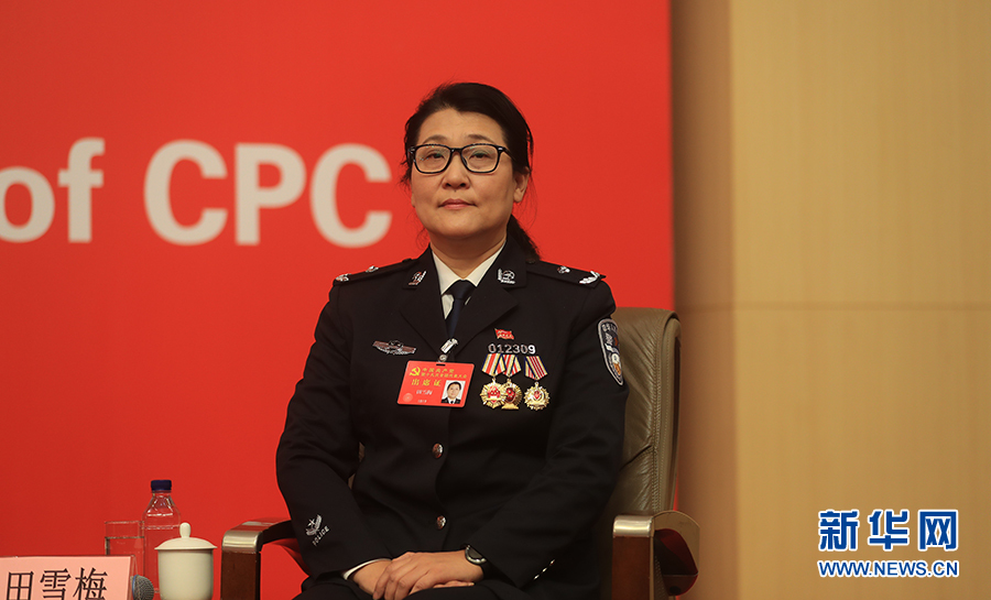 10月19日,十九大新闻中心举办集体采访,邀请政法战线代表谈全面推进依法治国。图为公安部物证鉴定中心法医病理损伤技术处副处长田雪梅。新华网 郝广鹏摄