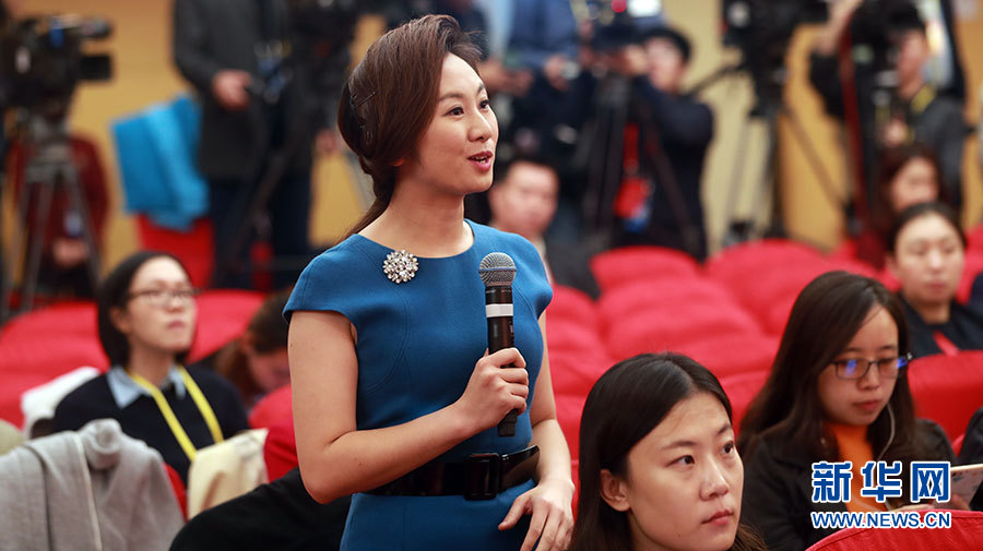 10月19日,十九大新闻中心举办集体采访,邀请工信和通讯领域代表谈走新型工业化道路。图为中国国际电视台记者提问。新华网 郝广鹏摄