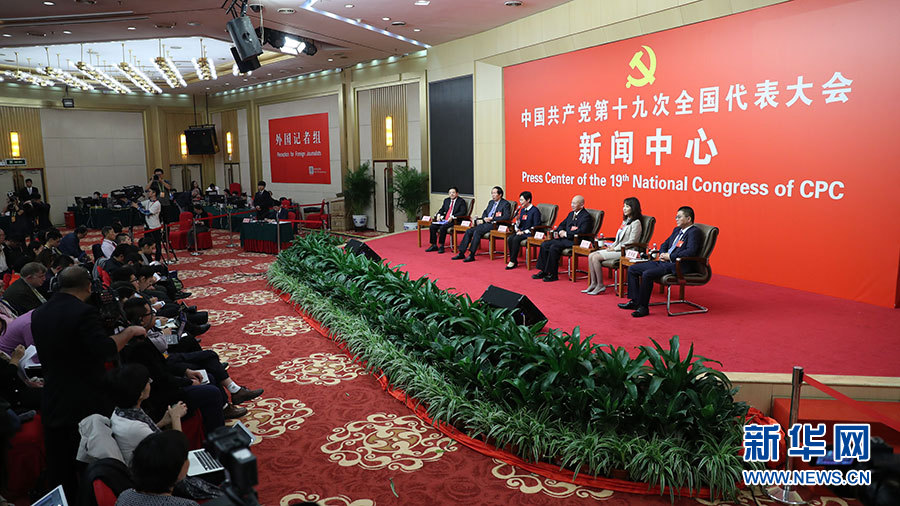 10月20日,十九大新闻中心举办集体采访活动,主题为“文化发展开创新局面”。图为集体采访现场。新华网 陈杰摄