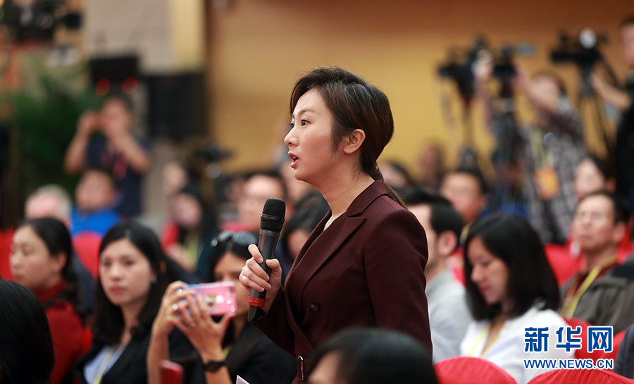 10月20日,十九大新闻中心举办集体采访活动,主题为“文化发展开创新局面”。图为中国国际电视台记者提问。新华网 陈杰摄