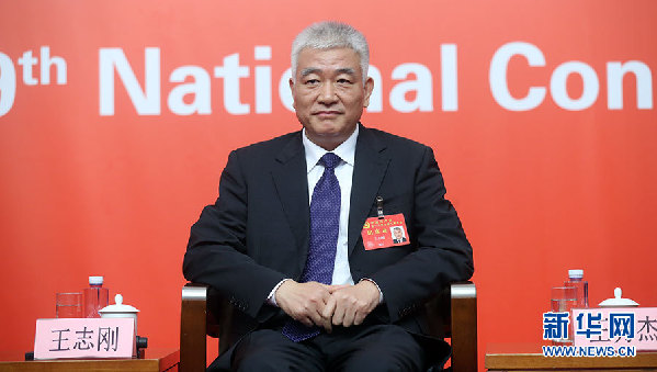 10月20日19:00,十九大新闻中心举办集体采访活动,主题为“实施创新驱动发展战略”。图为科技部党组书记、副部长王志刚。新华网 郝广鹏 摄