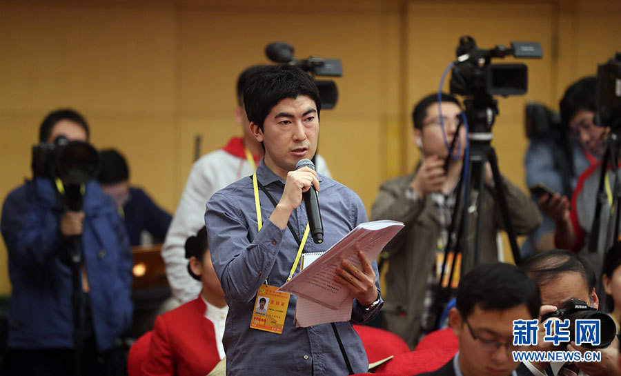 10月21日,十九大新闻中心举办记者招待会,邀请中共中央统战部常务副部长张裔炯、副部长冉万祥,中共中央对外联络部副部长郭业洲介绍党的统一战线工作和党的对外交往情况,并回答记者提问。图为日本共同社记者提问。新华网 郝广鹏摄