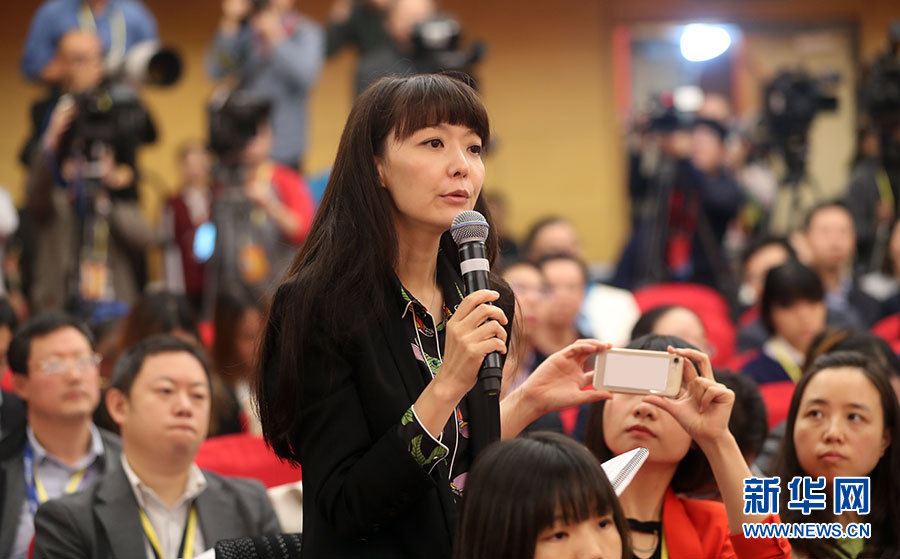 10月21日,十九大新闻中心举办记者招待会,邀请中共中央统战部常务副部长张裔炯、副部长冉万祥,中共中央对外联络部副部长郭业洲介绍党的统一战线工作和党的对外交往情况,并回答记者提问。图为凤凰卫视、凤凰网记者提问。新华网 郝广鹏摄