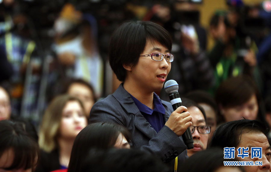 10月21日,十九大新闻中心举办记者招待会,邀请国家发展改革委党组书记、主任何立峰,副主任张勇,副主任宁吉喆介绍以新发展理念为引领,推进中国经济平稳健康可持续发展有关情况,并回答记者提问。图为新华社记者提问。新华网 郝广鹏摄