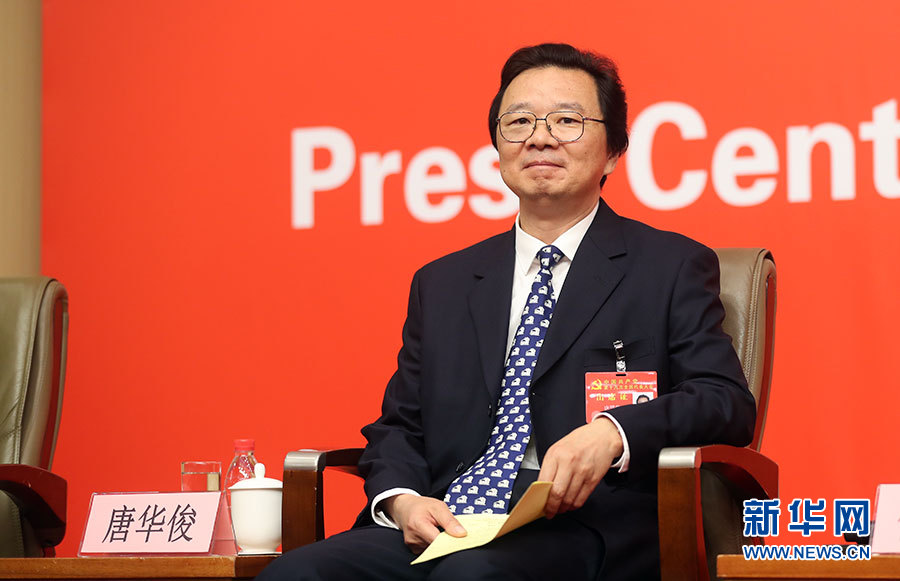10月21日,十九大新闻中心举办集体采访活动,主题为“农业科技创新”。图为农业部党组成员、中国农业科学院院长,中国工程院院士唐华俊。新华网 郝广鹏摄