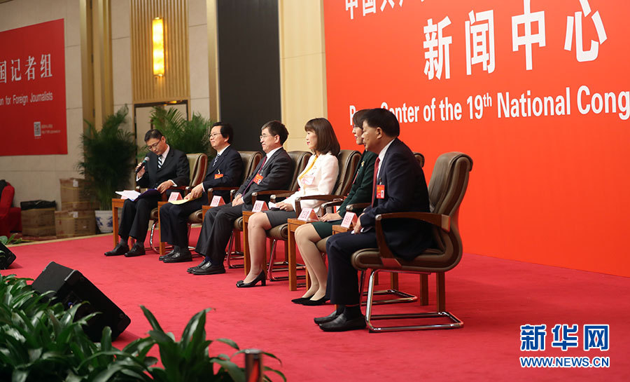 10月21日,十九大新闻中心举办集体采访活动,主题为“农业科技创新”。图为集体采访活动现场。新华网 郝广鹏摄