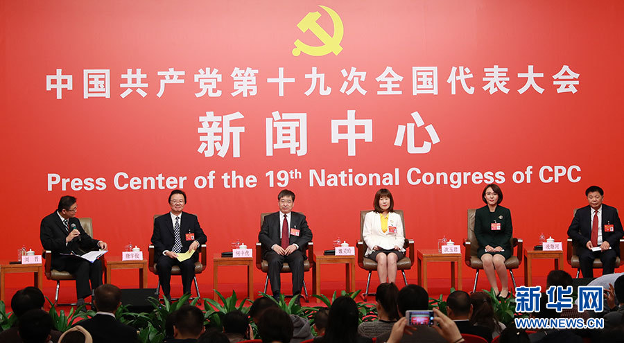 10月21日,十九大新闻中心举办集体采访活动,主题为“农业科技创新”。图为集体采访活动现场。新华网 郝广鹏摄