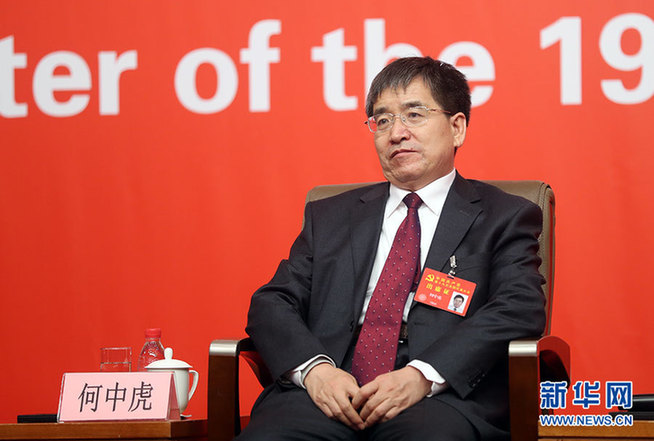 10月21日,十九大新闻中心举办集体采访活动,主题为“农业科技创新”。图为中国农业科学院作物科学研究所研究员、国家小麦改良中心主任何中虎。新华网 郝广鹏摄