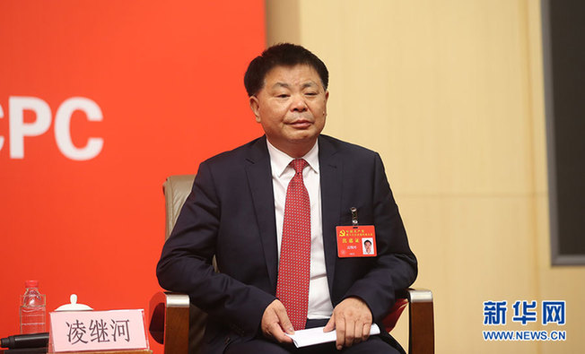 10月21日,十九大新闻中心举办集体采访活动,主题为“农业科技创新”。图为江西省安义县种粮大户、绿能农民专业合作社党支部书记凌继河。新华网 郝广鹏摄