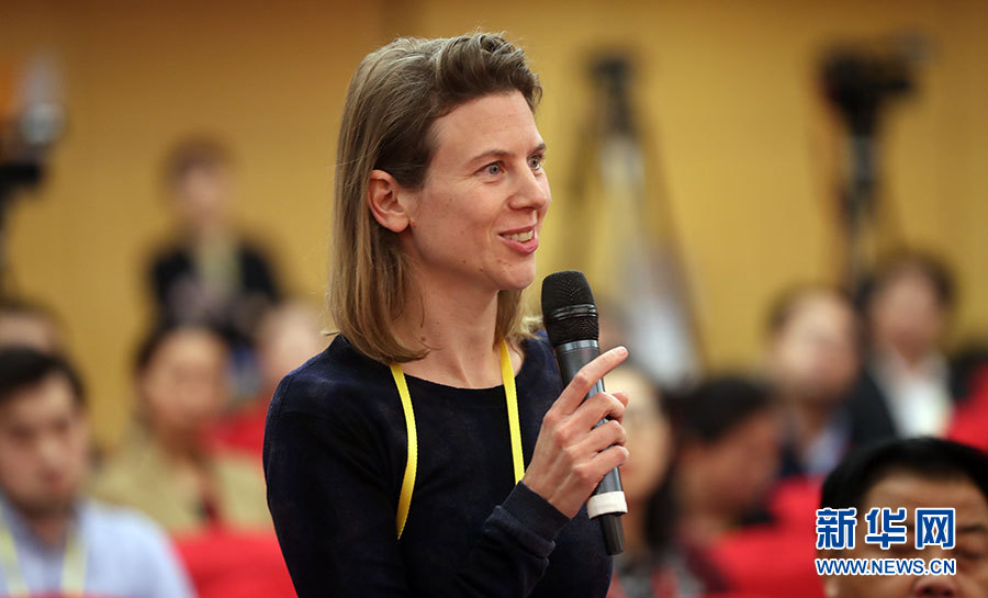 10月21日,十九大新闻中心举办集体采访活动,主题为“农业科技创新”。图为路透社记者提问。新华网 郝广鹏摄
