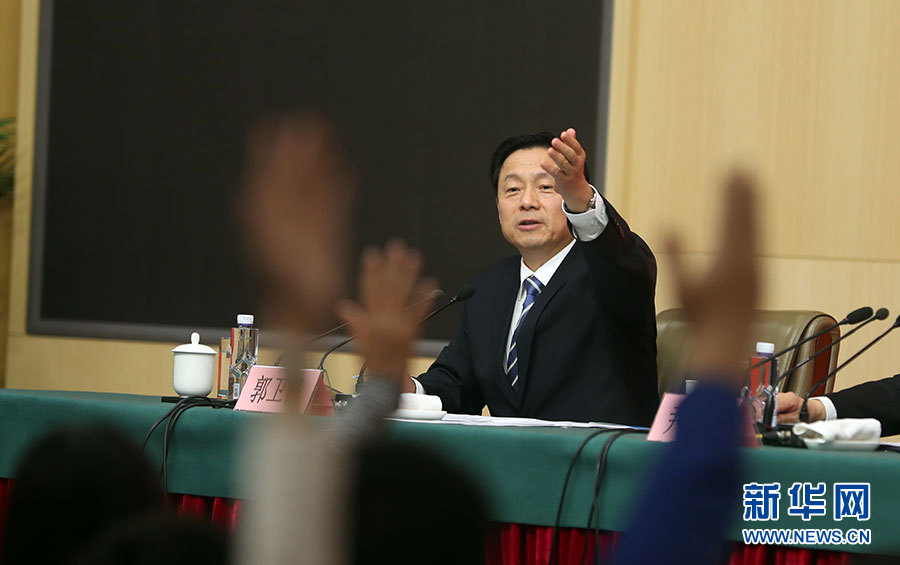 10月22日,十九大新闻中心举办记者招待会,邀请教育部党组书记、部长陈宝生,民政部党组书记、部长黄树贤,人力资源社会保障部党组书记、部长尹蔚民,住房城乡建设部党组书记、部长王蒙徽,国家卫生计生委党组书记、主任李斌介绍满足人民新期待,保障改善民生有关情况,并回答记者提问。图为主持人郭卫民。新华网 郝广鹏摄