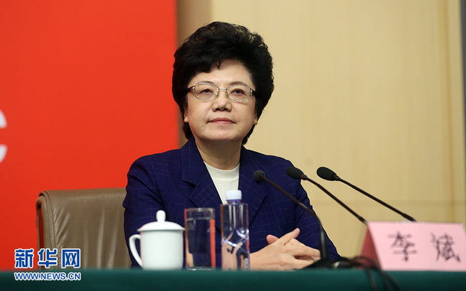 10月22日,十九大新闻中心举办记者招待会,邀请教育部、民政部、人力资源社会保障部、住房城乡建设部、国家卫生计生委相关负责人介绍满足人民新期待,保障改善民生有关情况,并回答记者提问。图为国家卫生计生委党组书记、主任李斌。新华网 郝广鹏摄