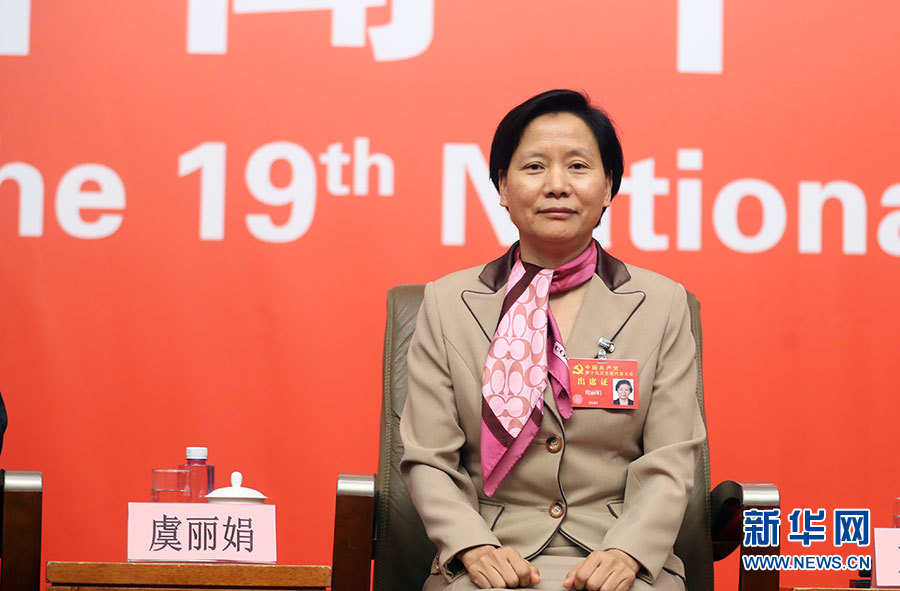 10月22日,十九大新闻中心在梅地亚中心二层新闻发布厅举办集体采访活动,邀请教育领域代表谈“教育综合改革”。图为上海市教育卫生工作党委书记虞丽娟。新华网 郝广鹏摄