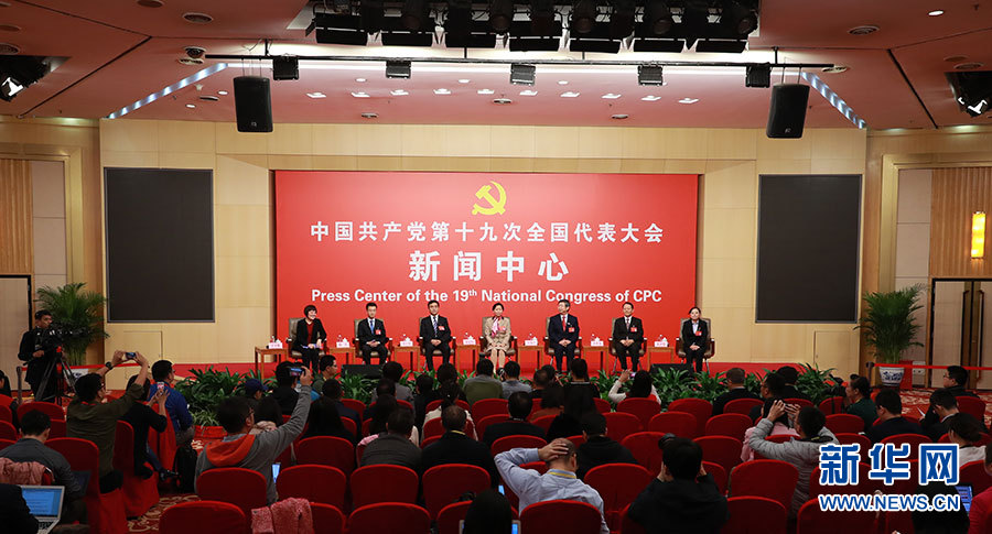 10月22日,十九大新闻中心在梅地亚中心二层新闻发布厅举办集体采访活动,邀请教育领域代表谈“教育综合改革”。图为集体采访活动现场。新华网 郝广鹏摄