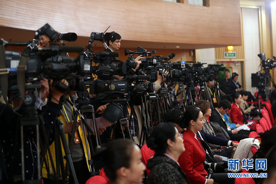 10月22日,十九大新闻中心在梅地亚中心二层新闻发布厅举办集体采访活动,邀请教育领域代表谈“教育综合改革”。图为集体采访活动现场。新华网 郝广鹏摄