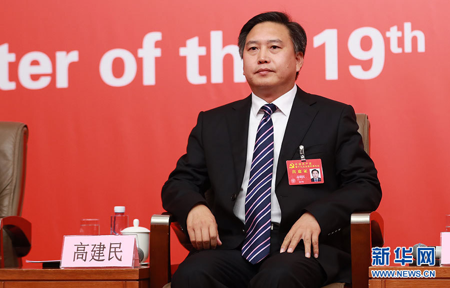 10月23日,十九大新闻中心举办集体采访活动,主题为“打好生态环保攻坚战”。图为河北省环保厅党组书记、厅长高建民。新华网 郝广鹏摄