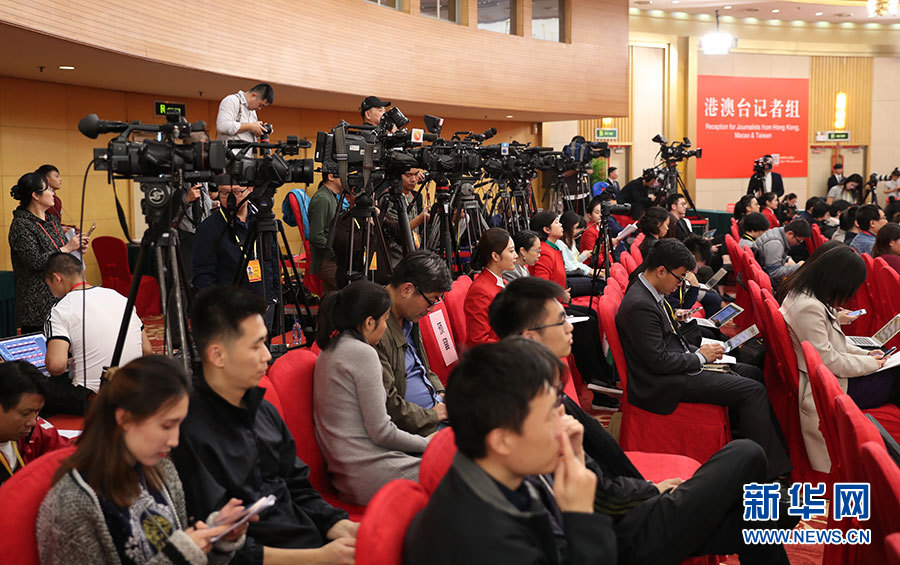 10月23日,十九大新闻中心举办集体采访活动,主题为“打好生态环保攻坚战”。图为现场记者。新华网 郝广鹏摄