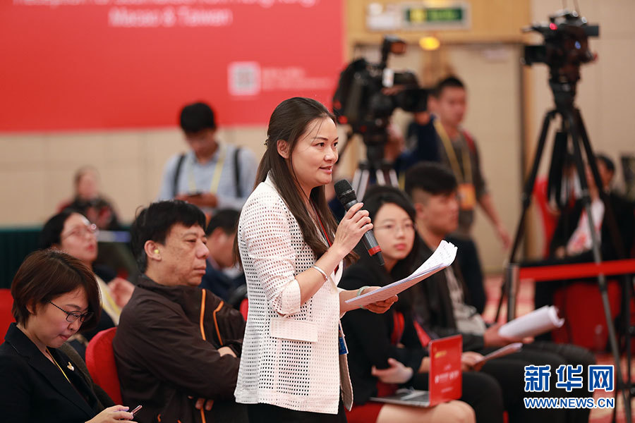 10月23日,十九大新闻中心举办集体采访活动,主题为“打好生态环保攻坚战”。图为中国冶金报记者提问。新华网 郝广鹏摄