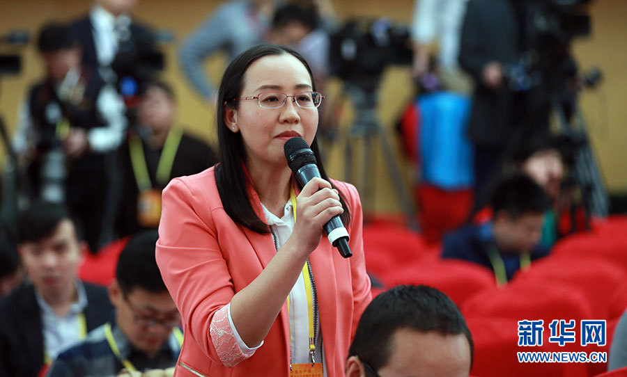 10月23日,十九大新闻中心举办集体采访活动,主题为“打好生态环保攻坚战”。图为南方报业记者提问。新华网 郝广鹏摄
