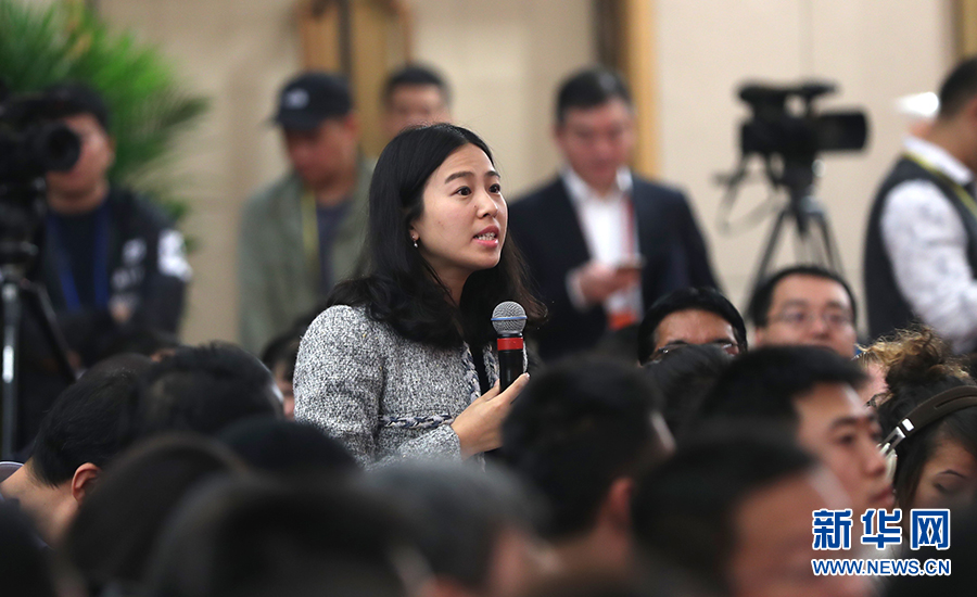 10月26日上午10:00,中国共产党第十九次全国代表大会新闻发言人在梅地亚宾馆二层新闻发布厅召开专题新闻发布会,请有关方面负责人解读十九大报告,并回答记者关心的问题。图为澳门澳亚卫视记者提问。新华网 王成云 摄