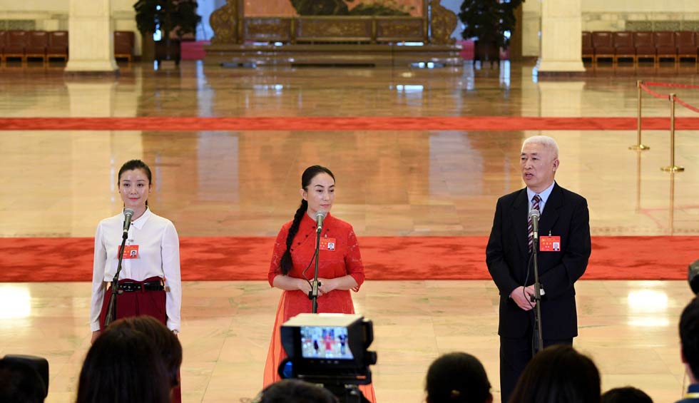蔡松涛、杜丽群、杨小玲、贾立群代表接受采访