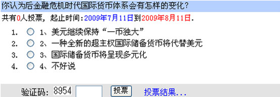 | 尽管美联储主席伯南克主导的"数量宽松的货币政策"属不得已为之,意在向市场注入流动性,但是"救市"的成本要其它国家来承担却是不争的事实。从那一刻起,每个国家更加意识到一个事实:完全依靠一个主权国家货币的世界货币体系,在危机发生时是何等脆弱。 [详细] | | 央行26日公布的《中国金融稳定报告(2009)》表示,央行将积极推动国际金融体系改革,推动建立公平、公正、包容、有序的国际金融新秩序。报告显示,央行将努力改革国际货币体系,推动国际储备货币向着币值稳定、供应有序、总量可调的方向完善,从根本上维护全球经济金融稳定。 [详细] | | 中国的这些看法和建议在G20峰会召开前一周左右提出,显示中国政府表明态度的意味更浓一些,因为事实上没有足够的时间来推动这些建议并使之成为具体政策。首先,中国希望试探市场的反应,从目前引起的国际社会的广泛关注来看,已经达到了部分的目的。 [详细] |