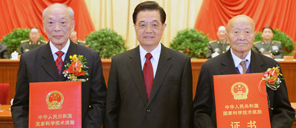 胡锦涛向师昌绪院士、王振义院士颁奖