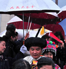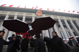 两会特写:雪中情 伞下情