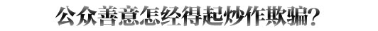 这样的炒作相当于大喊一声“狼来了”,这次成功了,下次就较少有人相信,再多喊几次就根本没有人相信。这一次谢三秀母女得到了救助,可以说“救人比道德更重要”(石金泉语),但下一次有人需要救助,还会有那么多人相信吗?为吸取教训,很多人会用怀疑的目光打量任何需要救助的人,紧捂自己的荷包,不愿轻易伸出援手,如此,更多急需救助的人得不到救助,整个社会将陷入冷漠、怀疑的气氛之中。相比这样的恶劣结果,谢三秀母女得到救助之“善”显然得不偿失。当前社会信义本就非常脆弱,人与人之间缺乏信任,用策划、炒作诱骗人们的爱心,“竭泽而渔”的手段让本就脆弱的社会信义雪上加霜。 …[详细] |