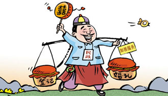 | 政府机关在提供服务之时,也最不应该像唯利是图的“商人”那样,搞稳赚不赔的买卖。况且,民政工作人员当婚礼主持人、提供场所等,工作人员原本拿的就是社会公众提供的薪酬、工作场所也是公共资源,异化为“收费”恐怕也实为不妥。当然,我们不能完全否认民政部门的出发点,但如果要想将好事办好,请一定首先打消“做生意”的念头。真正让官方提供的“婚礼式颁证”变为公益性服务,或收费极为低廉的公共性服务,这方是“婚礼式颁证”的实质所在。其实,要想避免这项新政策免遭非议、又能得到一部分人的好评,办法很简单,那就是把选择权交给消费者,不让“婚礼式颁证”成为强制消费。 …[详细] |