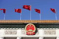 人民大会堂红旗飘扬