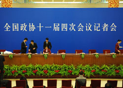 [新华网、中国政府网现场报道]2011年3月8日10时,全国政协十一届四次会议在人民大会堂三楼大厅举行记者会,主题是“推进基本公共服务体系建设,保障和改善民生”。全国政协委员郑新立、宋晓梧、邵鸿、吴明江、于炼出席并回答记者的提问。新华网、中国政府网全程直播此次记者会,敬请关注! [2011-03-08 09:11:40] |