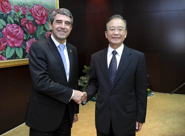 在会见普列夫内利耶夫时,温家宝表示,保加利亚是最早承认中华人民共和国的国家之一。建交63年来,双方相互尊重,平等相待,传统友谊得到巩固和发展。保加利亚在国际金融危机中坚持市场开放,积极吸引外资,这为中保扩大互利合作提供了有利条件。中国政府鼓励本国企业赴保加利亚投资,在中国与中东欧合作框架下就确定和实施有关项目加强磋商,争取早日见到成效。双方要共同努力,加强政治、文化、社会等领域交流,全面推进两国友好关系。