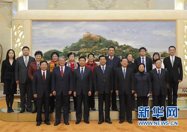 这是会议开始前贾庆林等亲切会见马文瑞同志亲属。 新华社记者 饶爱民 摄