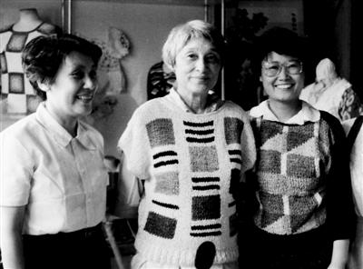 1986年6月25日,著名英籍华裔女作家韩素音(中)在上海工艺编织厂。一生中,她的作品几乎都与中国相依相恋。“文革”中的韩素音曾婉拒为江青立传。她有一句名言“我的一生将永远在两个相反的方向之间跑来跑去:离开爱,奔向爱;离开中国,奔向中国”。