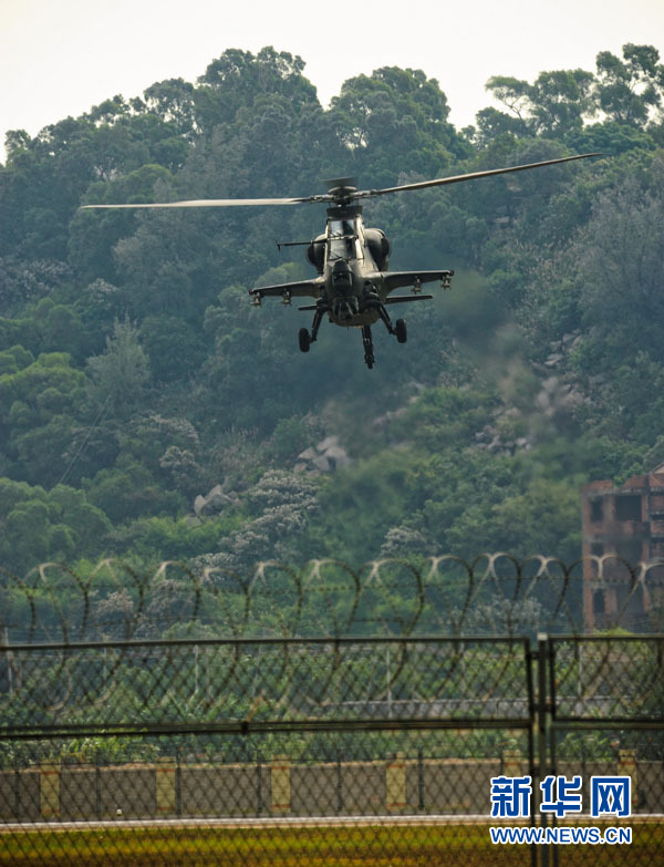 11月11日,国产武直10武装直升机在珠海三灶机场进行飞行训练。当日,我国自主研制生产的武直10武装直升机在珠海三灶机场进行了约20分钟的适应性飞行训练,做出倒飞、莱维斯曼机动、高速大角度俯冲、低空小半径盘旋等动作,展现出其优异性能,引来航展现场观众频频喝彩。新华社记者 杨光 摄