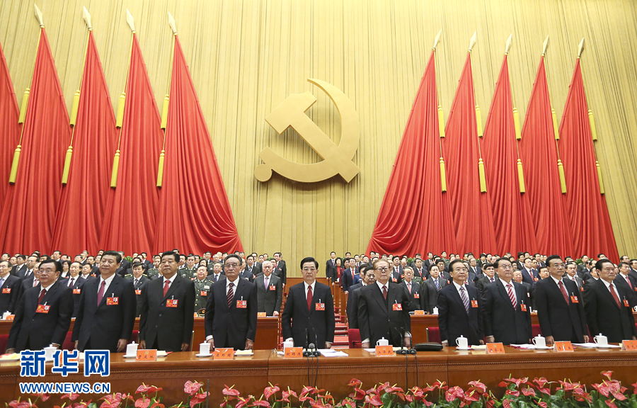 11月14日,中国共产党第十八次全国代表大会在北京人民大会堂闭幕。这是胡锦涛、江泽民、吴邦国、温家宝、贾庆林、李长春、习近平、李克强、贺国强、周永康在主席台上。新华社记者鞠鹏摄