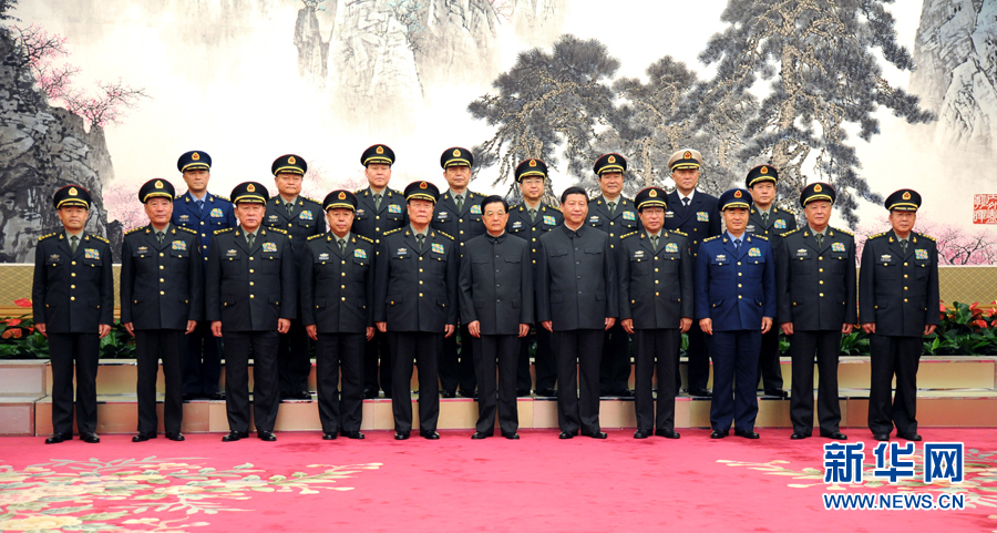 11月16日,胡锦涛同志和中共中央总书记、中央军委主席习近平与出席中央军委扩大会议的新老军委领导合影。 新华社记者王建民摄