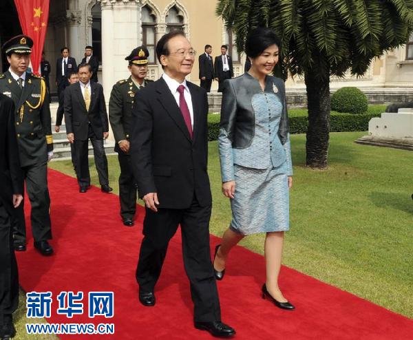 会谈前,英拉为温家宝举行隆重欢迎仪式。